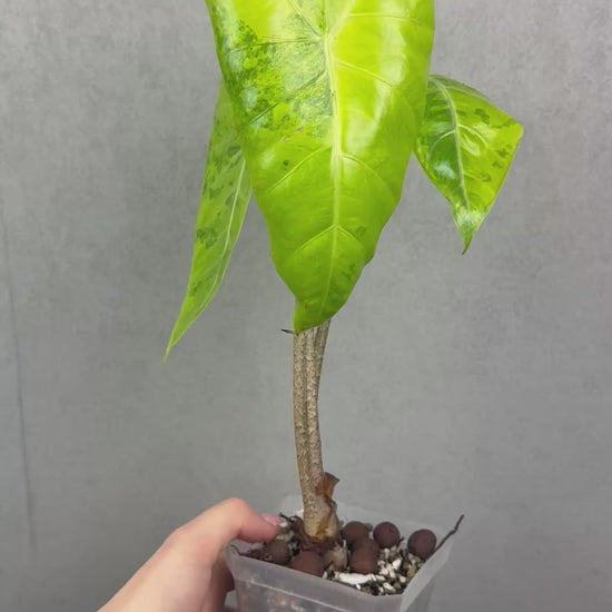 Meet the Alocasia Longiloba Lemon Lime from corm! This vibrant, large plant boasts stunning bright variegation that will add a cheerful pop to any space.